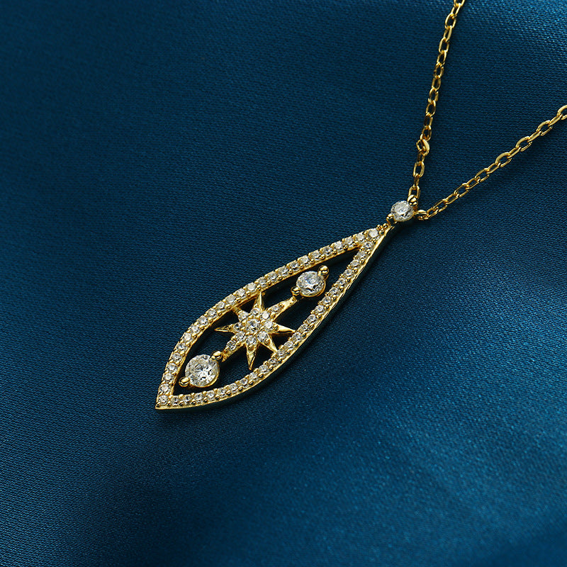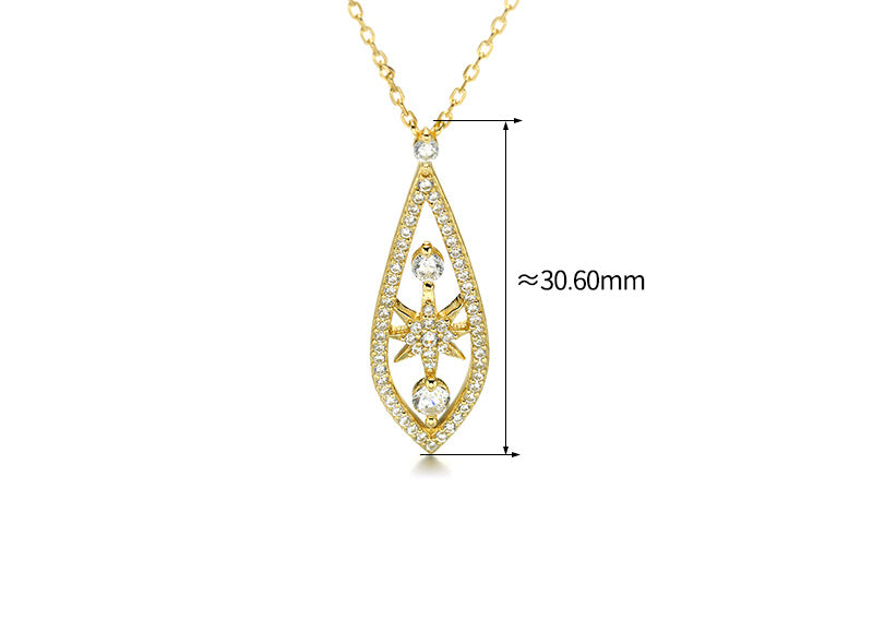 Vintage Water Drop Sterling Silver Gold-plated Zircon Necklace For Women