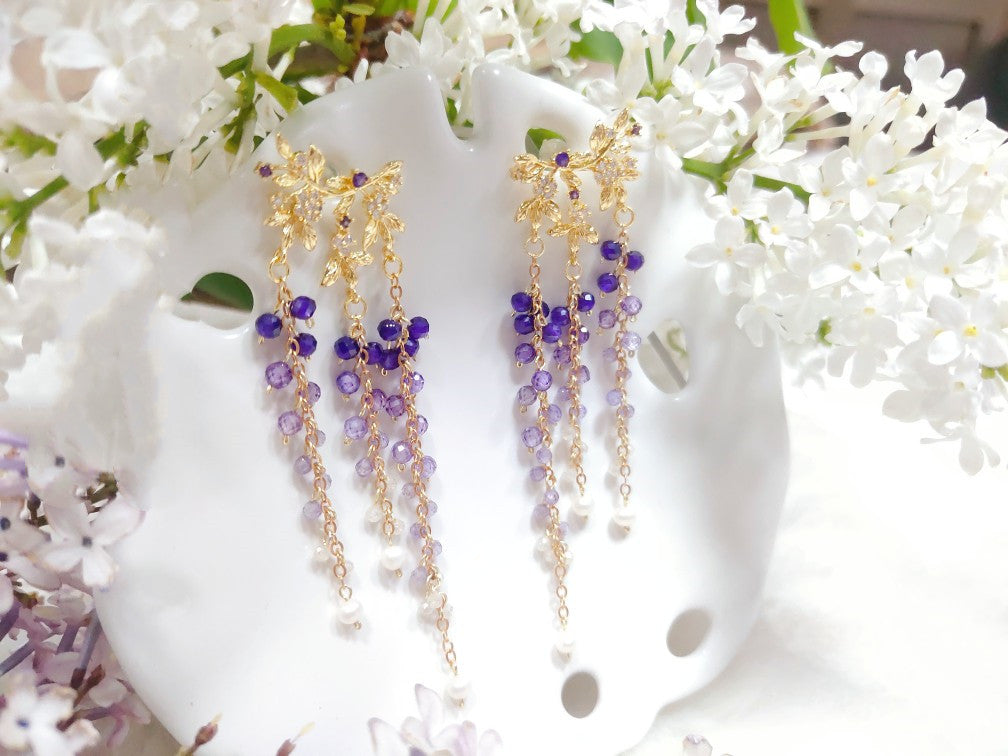 Color: gold left ear hanging single gold right ear hanging single white k color left ear hanging single white k color right ear hanging single white k color wisteria earrings pair 14k gold wisteria earrings pair