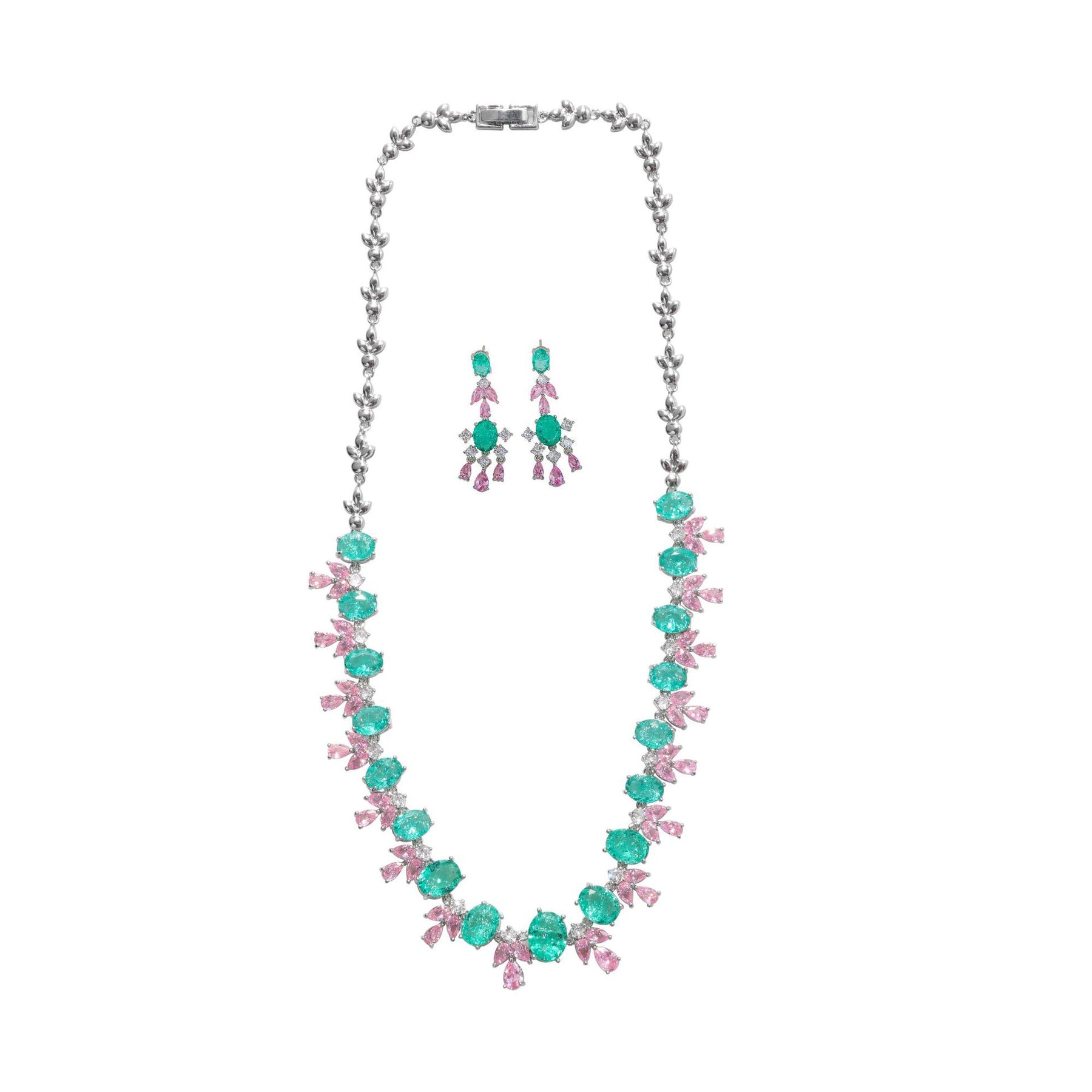 Women's Fashion Casual Skinny Zirconia Tassel Necklace Earrings Set